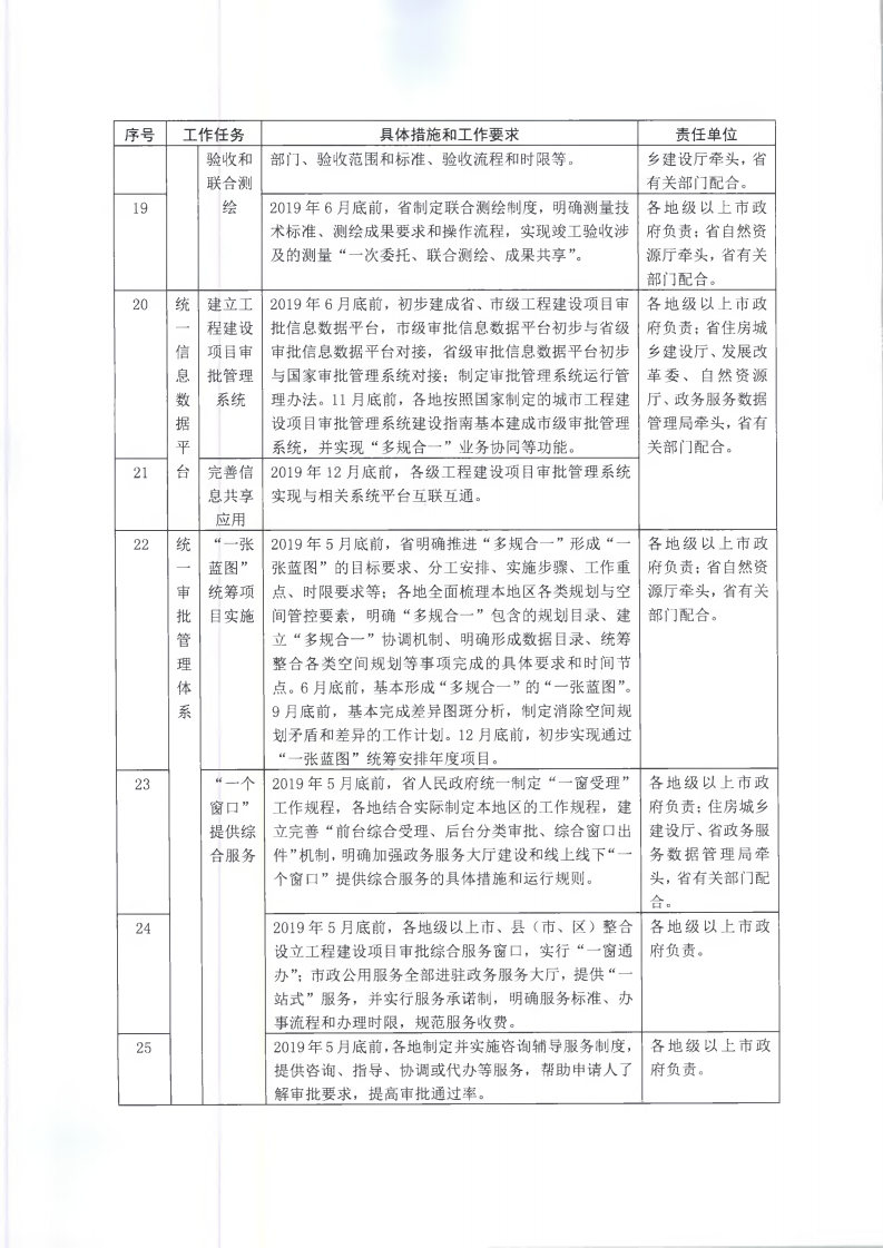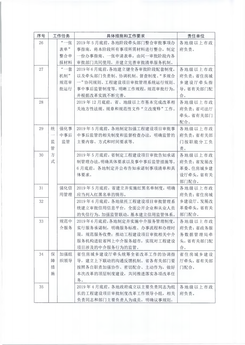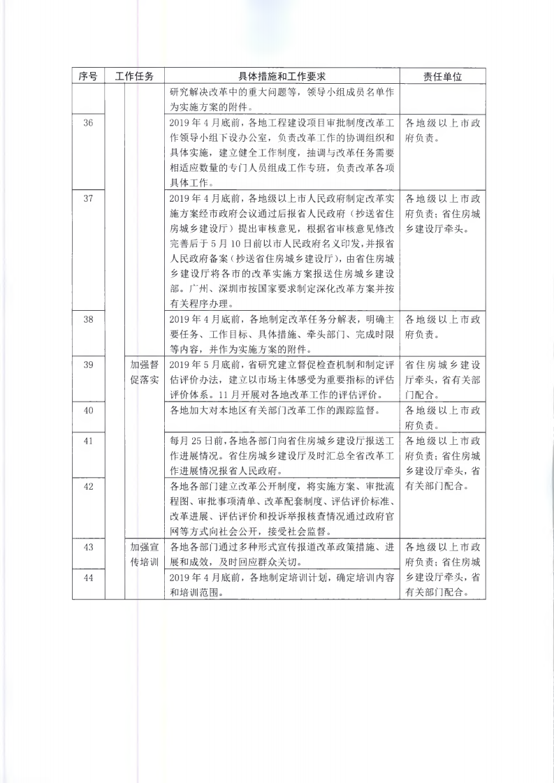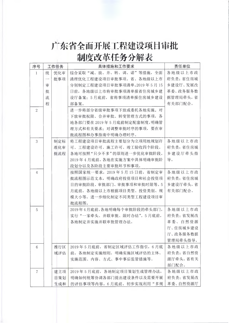 為貫徹落實《國務院辦公廳關于全面開展工程建設項目審批制度改革的實施意見》(國辦發(fā)〔2019〕11號)和《廣東省人民政府關于印發(fā)廣東省全面開展工程建設項目審批制度改革實施方案的通知》(粵府〔2019〕49號)要求,經(jīng)省人民政府同意,現(xiàn)將《廣東省全面開展工程建設項目審批制度改革任務分解表》印發(fā)給你們,請認真組織實施。