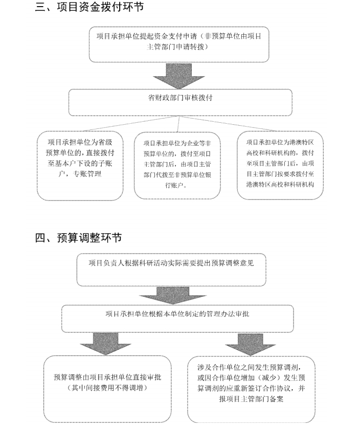 第二十三條 資助香港、澳門特區高校、科研機構的省科研項目經費,應按照國庫集中支付的有關規定和向境外支付的有關要求,由項目主管部門及時組織撥付至港澳特區高校、科研機構。其中,港澳特區高校、科研機構與省內單位聯合承擔的項目,項目經費可分別撥付至港澳特區高校、科研機構和省內單位。