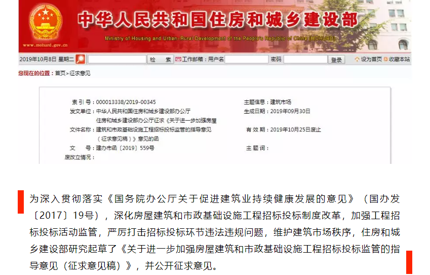 住房和城鄉建設部:進一步加強房屋建筑和市政基礎設施工程招投標監管