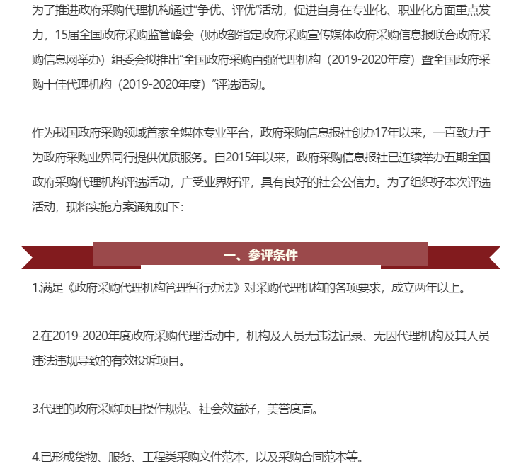 全國政府采購百強代理機構(2019-2020年度)暨全國政府采購十佳代理機構(2019-2020年度)評選活動啟動