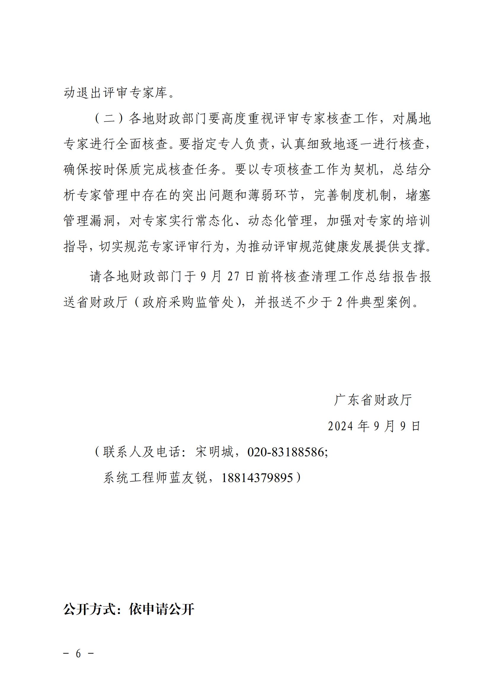 廣東省財政廳關于開展政府采購評審專家專項核查清理工作的通知